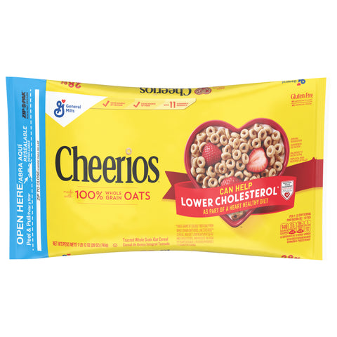 Can help lower cholesterol. May reduce the risk of heart disease. Cheerios provides 1.5 grams per serving. 34 g whole grains per serving. At least 48 g recommended daily. Good source of calcium. Good source of fiber. With 11 vitamins and minerals. Just think of them as a delicious start to your day. Either way, it's 100% oat-loving awesomeness. No artificial colors.