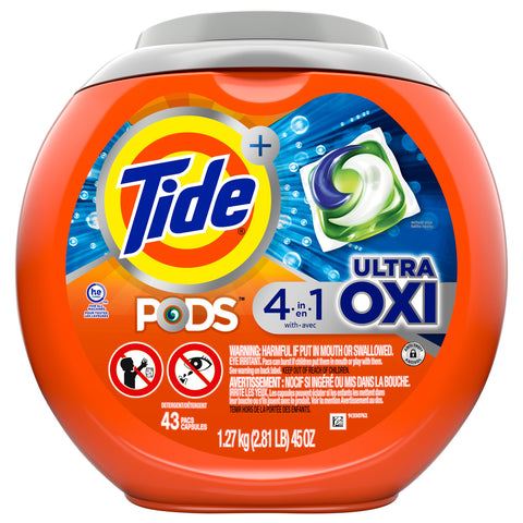 First Aid Treatment: Contains nonionic and anionic surfactants, ethoxylated polyethylene polyamine (polymer) and enzymes. If swallowed, or if detergent gets in mouth or eye or on skin, call your local poison control center (or in US: 1-800-222-1222) or doctor immediately. Immediately and thoroughly rinse eye or skin with water for 15 minutes. If swallowed, give a glass of water or milk. Do not induce vomiting.,Warning: Harmful if put in mouth or swallowed. Eye irritant. Pacs can burst if children put them in mouth or play with them. See warning on back label. Keep out of reach of children. Warning: Concentrated detergent pacs can burst if children put them in mouth or play with them. The liquid is harmful if put in mouth, swallowed, or in eyes. Keep pacs out of reach of children and pets. Store container where children cannot reach or climb to it, out of sight and in a secure place. Keep container fully closed. Never leave any pacs out of container. Do not let children handle pacs, even if supervised. Avoid breaking pacs. Do not handle pacs with wet or moist hands. Do not expose pacs to moisture. Do not cut or puncture pacs. If pacs stick together, do not try to separate them. May irritate eyes. Do not get in eyes. Keep out of reach of children.