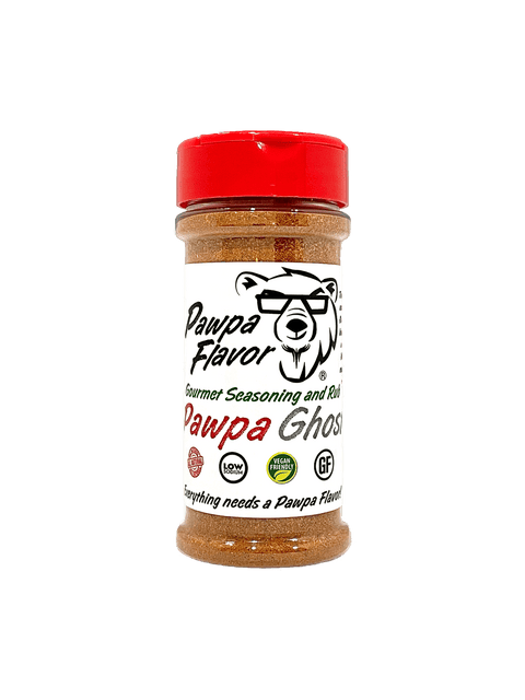Turn up the heat with Pawpa Ghost, the ultimate spicy seasoning and rub for those who crave intense flavor with a perfectly tamed heat. This robust blend features chilis, spices, sea salt and sugar, perfectly balanced to enhance the natural taste of your favorite meats, vegetables, and even snacks.