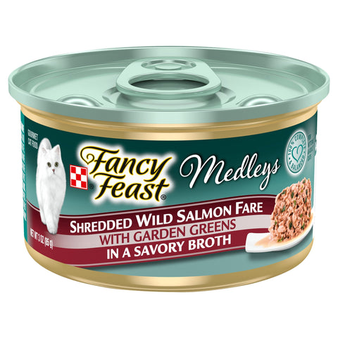 Fancy Feast Medleys Shredded Wild Salmon Fare With Garden Greens - 3 OZ 24 Pack