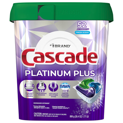 Cascade Platinum Plus ActionPacs Fresh Scent Dishwasher Detergent 19 Each - 4 Pack