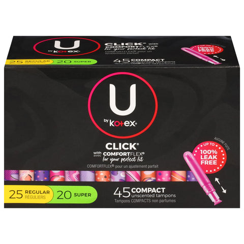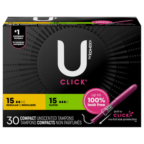 U by Kotex Click Compact Multipack Tampons, Regular/Super, Unscented, 30 Count - 30 CT 6 Pack