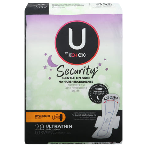 U by Kotex Security Overnight Ultra Thin Pads + Wings 28 ea - 28 CT 6 Pack