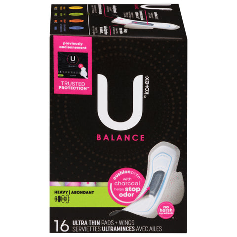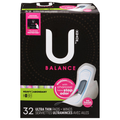 U by Kotex Balance Ultra-Thin Heavy Pads + Wings 32 ea - 32 CT 3 Pack