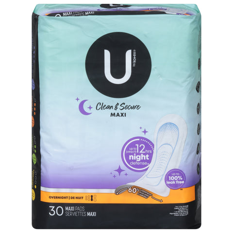 U by Kotex Clean & Secure Overnight Maxi Pads 30 ea - 30 CT 3 Pack