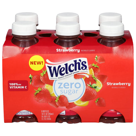 Welch's Strawberry Zero Sugar Drink 10 fl oz On-the-Go Bottle (Pack of 6) - 4 Pack