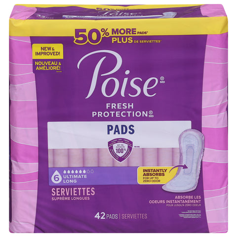 Poise Incontinence Pads & Postpartum Incontinence Pads, 6 Drop Ultimate Absorbency, Long Length, 45 Count (Packaging May Vary) - 45 CT 2 Pack