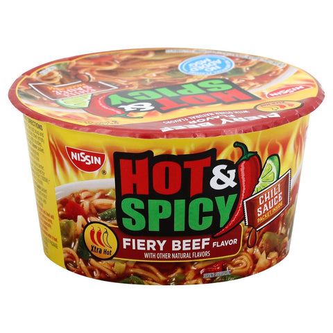Nissin Hot & Spicy Fiery Beef Ramen Noodle Soup - 3.28 OZ 6 Pack