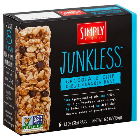 Junkless Chewy Granola Bars Chocolate Chip - 6.6 OZ 8 Pack