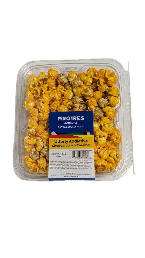 Argires Snacks Utterly Addictive Cheddarcorn & Caramel Mix Popcorn - 9 oz 8 Pack