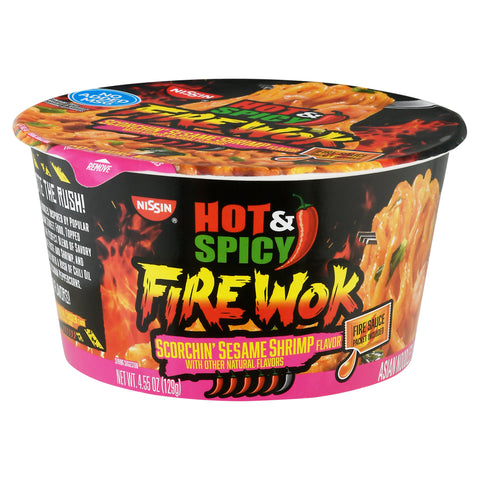 Nissin Fire Wok Hot And Spcy Sesame Shrimp Noodles - 4.55 OZ 6 Pack
