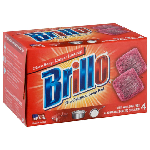 Brillo Steel Wool Soap Pad Cleaner With Oxi Clean - 4 CT 12 Pack