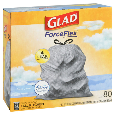 Glad ForceFlex Febreze Fresh Clean 13 Gallon Tall Kitchen Drawstring Bags - 80 CT 3 Pack