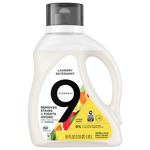 9 Elements Liquid Laundry Detergent, Lemon Scent, Vinegar Powered, 65oz - 65 FZ 4 Pack