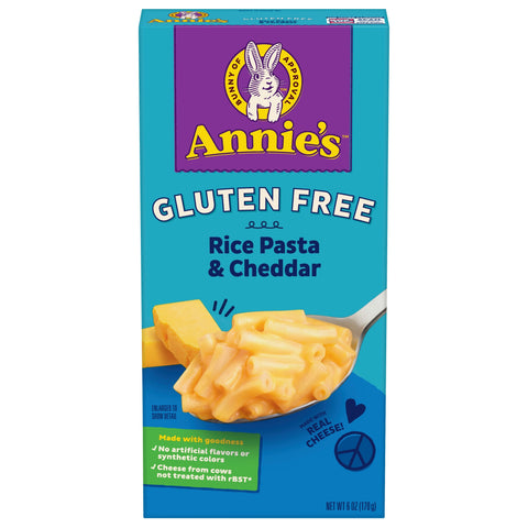 No artificial flavors or synthetic colors. Gluten free. We work with trusted suppliers to source only non-GMO ingredients. Bunny of Approval. Real cheese. Made with goodness! Cheese from cows not treated with rBST (No significant difference has been shown between milk derived from rBST-treated and non rBST-treated cows). We all crave yummy mac & cheese. So we make our gluten-free mac with all the same cheesy goodness. It's perfectly delicious for everybunny. Made with love by Annie's. Hoppiness starts here. annies.com. how2recycle.info. We Love to Hear Your Feedback! Contact Us at Annies.com or 1-800-288-1089 and Reference the Best If Used by Date. Visit Annies.com to learn about our commitment to a better planet, and to get a fun Annie's sticker. Box Tops for Education: No more clipping. Scan your receipt. See how at btfe.com. Try our other delicious gluten-free options! We reduce our Bunny Footprint by Using: Certified 100% recyclable paperboard. Minimum 35% post-consumer content. Recyclable.