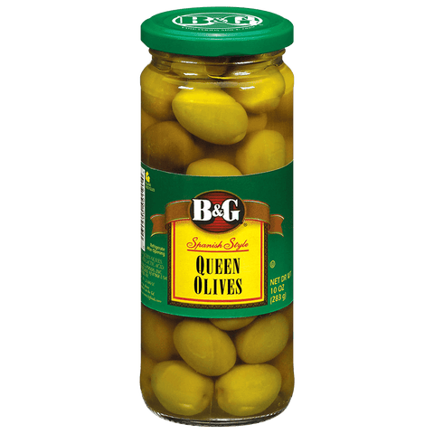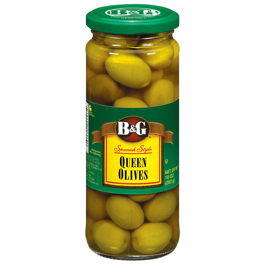 Large and flavorful, B&G ® Queen Olives offer a plump and juicy flesh that is simply irresistible for antipasto and appetizers, or packed as a healthy snack.