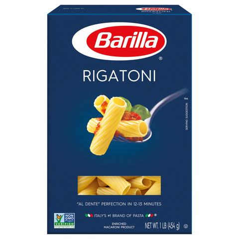 Enriched macaroni product. Non-GMO Product Verified. nongmoproject.org. Al dente perfection in 12-13 minutes. Italy's No 1 brand of pasta. Simply healthy. Simply delicious. Putting a fresh, delicious dinner on the table each night doesn't have to be complicated. The Bonilla lineup of pasta shapes and sauces can help you make a satisfying meal in as little as 15 minutes. barilla.com. how2recycle.info. For this recipe & others visit us at barilla.com. Call 1-800-922-7455 with any comments or questions. Made in the USA with USA and imported ingredients.