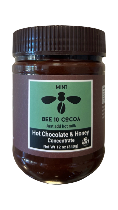 Item ships in 5 days. Indulge in the rich and refreshing taste of Bee 10 Cacao Mint Hot Chocolate Concentrate, brought to you by Creamed Honey Co. This delightful concentrate gives you the perfect blend of honey, cacao with a hint of mint. Think thin mints or your favorite mint chocolate cookie!
