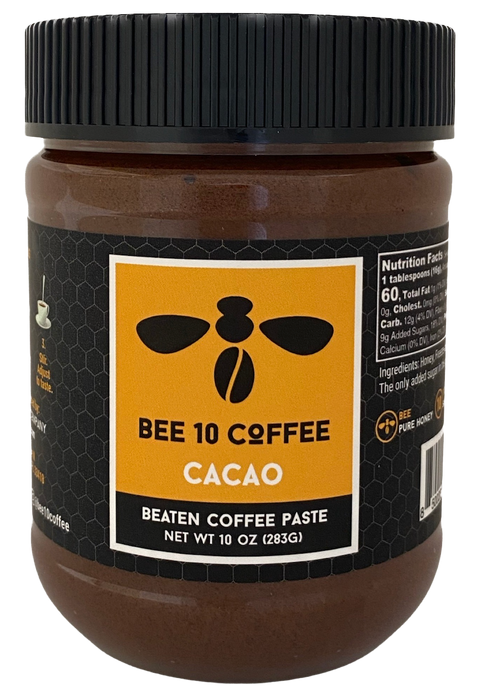Our Mocha Bee10Coffee paste is made from the finest Arabica coffee and Colombian coffee beans, combined with our local raw honey, and flavored with all-natural cacao to give it a unique rich chocolate taste you will love.