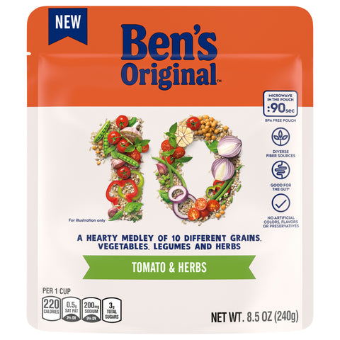 A hearty medley of 10 different grains, vegetables, legumes and herbs. No artificial colors, flavors or preservatives.