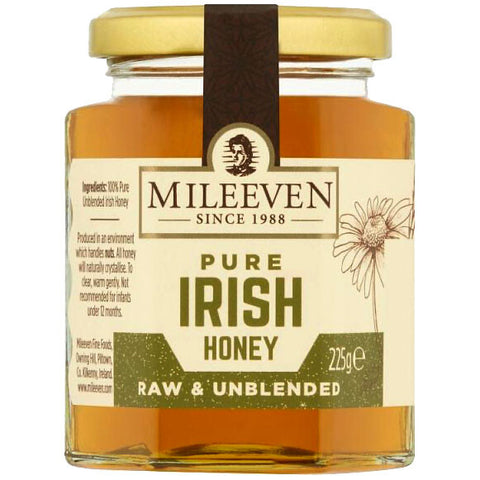 Mileeven Pure Irish Honey comes mainly from the sunny Southeast area of Ireland and is made from a mixture of Spring and Summer wildflowers. These flowers are mainly found in woodlands, fields and hedgerows that cover the area, and also some crops like apple blossom, which gives this honey its light golden color and beautiful floral flavor a real taste of the Irish summer. 100% Irish and 100% raw we don't mix it with anything else or any other honey. Each of the beekeepers' honey is packed separately so there can be a difference in flavor and color throughout the year, depending on what area the hives were in.Because Irish summers are not always very long or very sunny, Irish honey is quite rare and not often exported so being able to purchase it in the US is a real treat.
