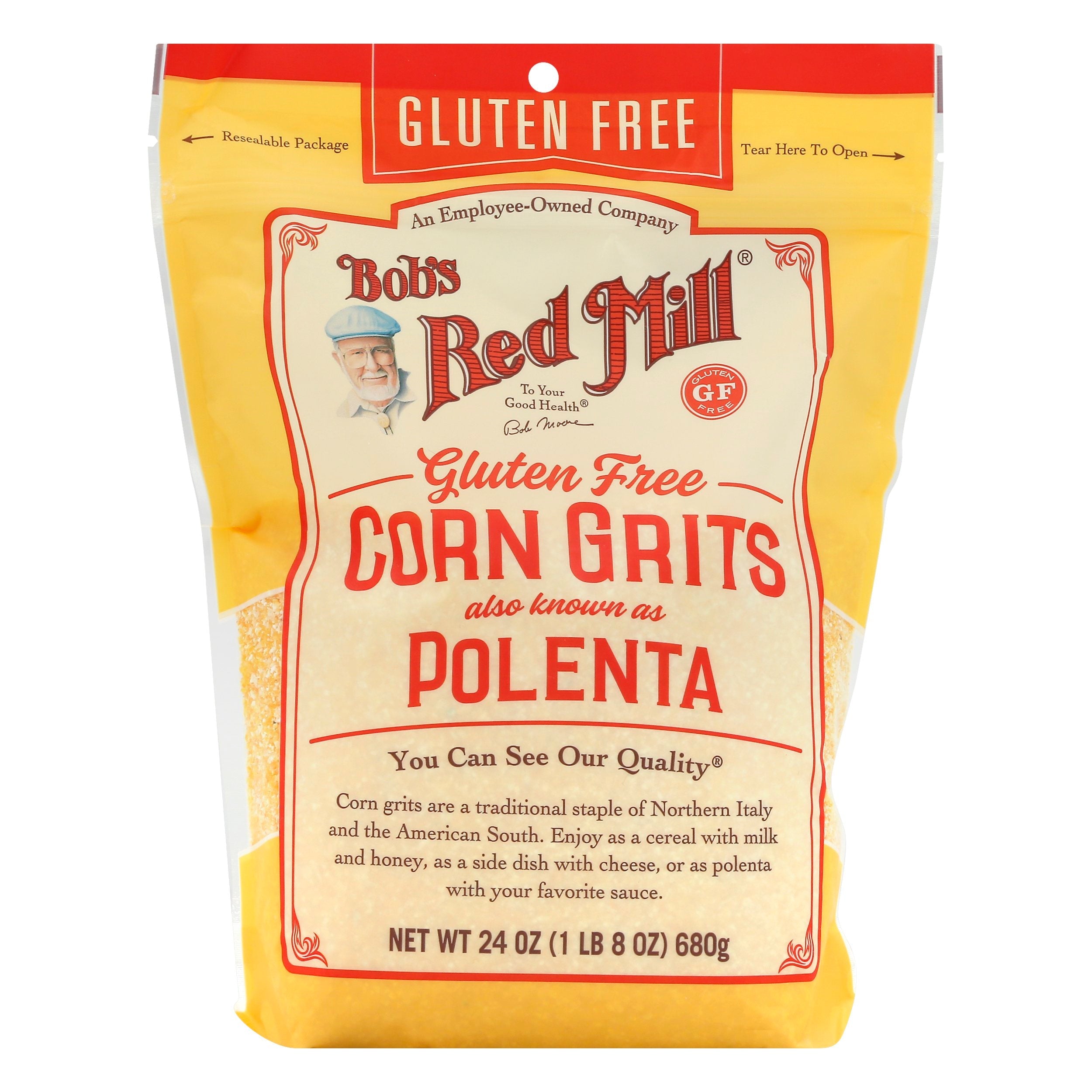 Gluten free. Tested and confirmed Gluten Free by our quality control laboratory. Corn grits also known as Polenta. You can see our quality. Corn grits are a traditional staple of Northern Italy and the American South. Enjoy as a cereal with milk and honey, as a side dish with cheese, or as polenta with your favorite sauce. An employee-owned company. Dear friends, Corn is perhaps the most traditional of American foods. Domesticated thousands of years ago, it's been a cultural and nutritional mainstay ever since. At Bob's Red Mill, we use only the finest-quality golden corn to create our traditional corn grits. Their rich flavor and incredible texture make our grits ideal for porridge, polenta and any number of entrées. We hope you enjoy them as much as we do. To your good health, Bob Moore. bobsredmill.com. For more information and recipes, visit bobsredmill.com. Resealable package.