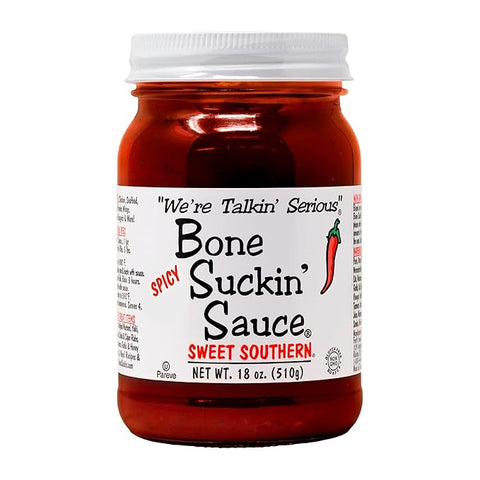 We're talkin' serious. All natural. Gluten free. Non GMO. Awards & Accolades: A+ Health Magazine; No. 1 Battle of the Sauces; Rated No. 1 in USA. All natural - fat free - gluten free. The serious barbecue, grilling & marinating sauce for land & sea. Use amply for that Bone Suckin' flavor! Great for: ribs, beef, pork, chicken, fish, tofu, seafood, stir fry, brisket, pasta & pizza. Recipes & more BoneSuckin.com. Made in the USA.