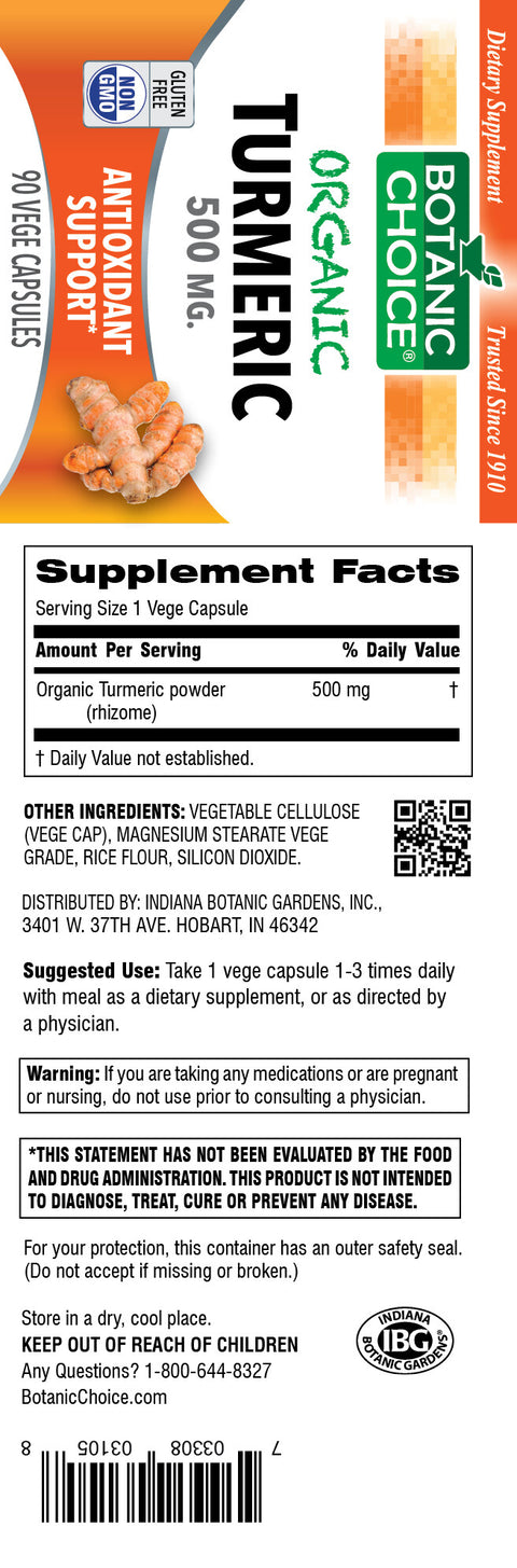 Botanic Choice ORGANIC TURMERIC 500 mg - 90 CT 12 Pack