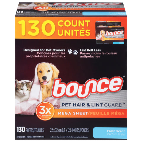 Bounce Pet Hair & Lint Guard Fresh Scent Dryer Sheets Mega 130 ea - 130 CT 3 Pack