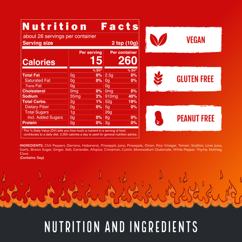 Buffalo Soldier brings together sweet grilled pineapple and aromatic baking spices like allspice, clove, and cinnamon to deliver a tropical Caribbean punch to any meal. This sauce packs authentic jerk flavor and heat with a fruity backbone for a robust and complex experience that unfolds on the palate. Enjoy this sauce on grilled meats or vegetables, with pulled pork, shrimp, or simply as a dipping sauce for a bit of sweet heat with every bite! 7/10 heat.