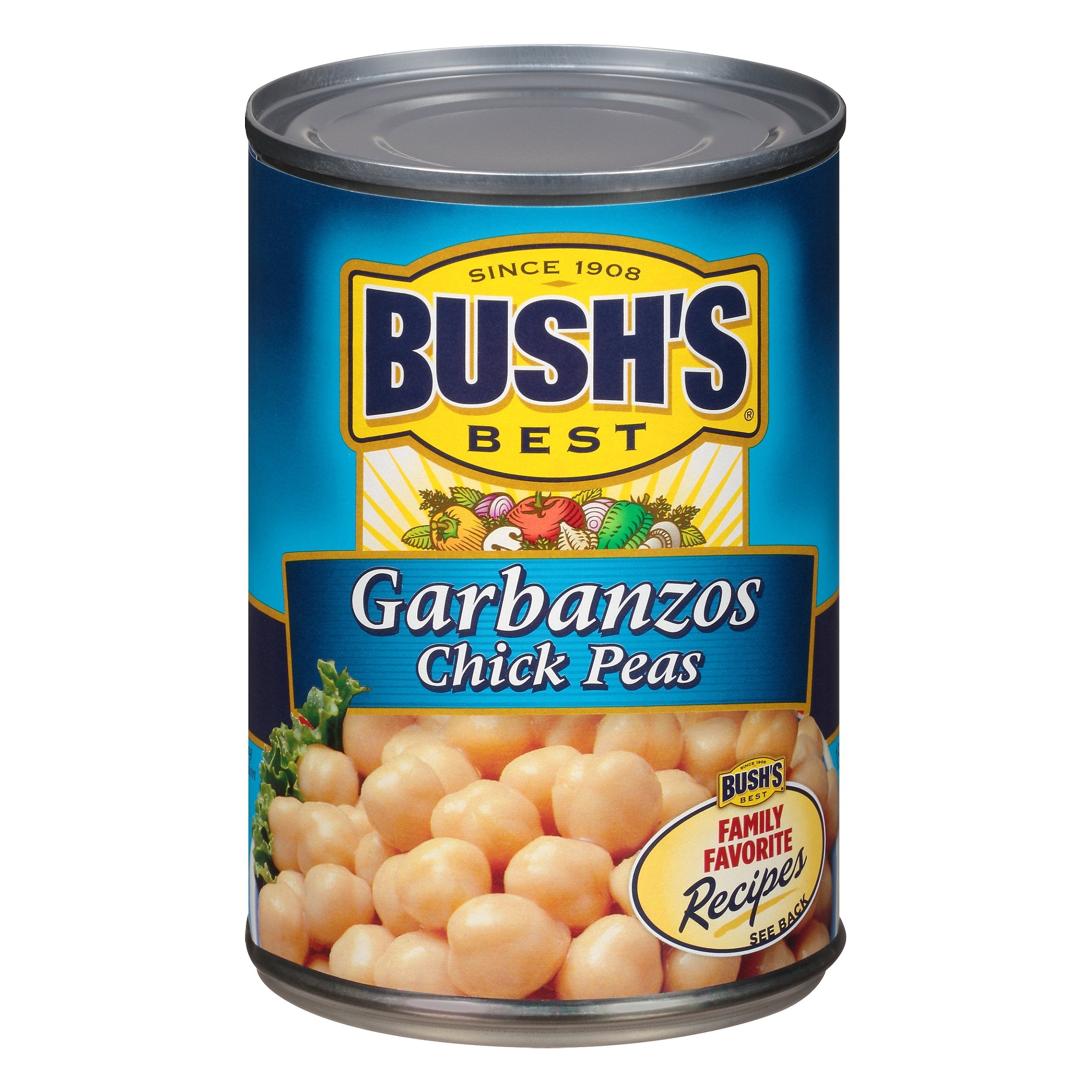 Chick peas. Gluten free. Since 1908. Family favorite recipes see back. www.bushbeans.com. For more recipes visit: www.bushbeans.com. 1-800-590-3797 Please refer to the code on end of can. Please recycle.