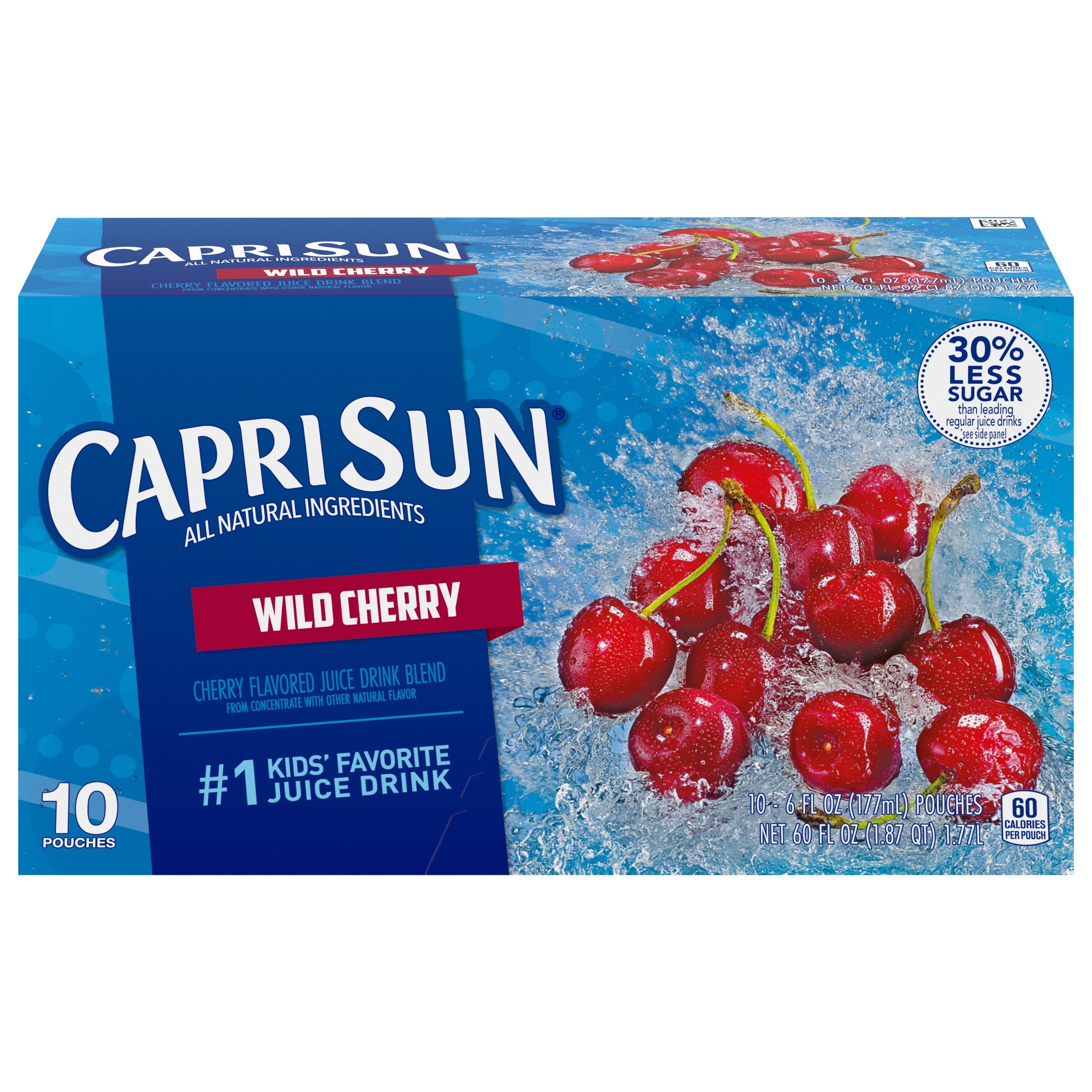 Cherry flavored juice drink blend from concentrate with other natural flavor. No artificial colors, flavors or preservatives. 60 calories per pouch. 30 % less sugar than leading regular juice drinks (This product 13 g total sugars; Leading regular juice drinks 20 g total sugars for 6 fl oz serving). See side panel. No high fructose corn syrup. All natural ingredients. No. 1 kid's favorite juice drink. All About Awesome! Capri Sun is awesomeness in a pouch. It has all of the deliciousness without any of the bad stuff. It's made with all-natural ingredients-that means no artificial colors, flavors, preservatives or high fructose corn syrup. That's what makes Capri sun as epic as the kids who drink it! You only want what's best for your kids, and so do we! That's why we're committed to making Capri Sun with all-natural ingredients. Everything that goes into our pouches is there to bring out the epicness of childhood. In other words, It's all good. how2recycle.info. Contact us at: 1-800-227-7478. Please refer to code numbers on side panel or on pouch when contacting us. Check Out for Other Offerings: Organic: USDA Certified Organic. 100% Juice: 100 % Juice Blend. CapriSun: Juice Drink Blend, Roarin' Waters: Flavored Water Beverage.