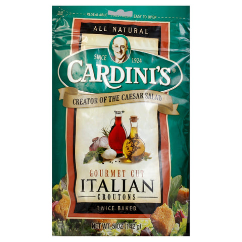 Gourmet cut. All natural. Since 1924. Creator of the Caesar salad. Before Caesar Cardini, there was no Caesar salad. The name Caesar Cardini has been widely famous for quality since 1924, when his creativity led him to invent the Caesar Salad in his popular Tijuana restaurant. The uniqueness of his original Caesar dressing recipe is reflected in today's extended line of Cardinis Salad Dressing flavors. Not only does the line include the original Caesar, but you can find other delicious flavors such as Balsamic Vinaigrette, Italian and Light Greek Vinaigrette. This exciting line of Cardinis Croutons tops off a story of legendary quality and taste. The taste legend of 1924 lives on in this all natural Italian crouton. Twice baked for a crunch you won't forget, Italian croutons are full of cheese, garlic and seasonings that will go perfectly with all of your salads. Made in USA.