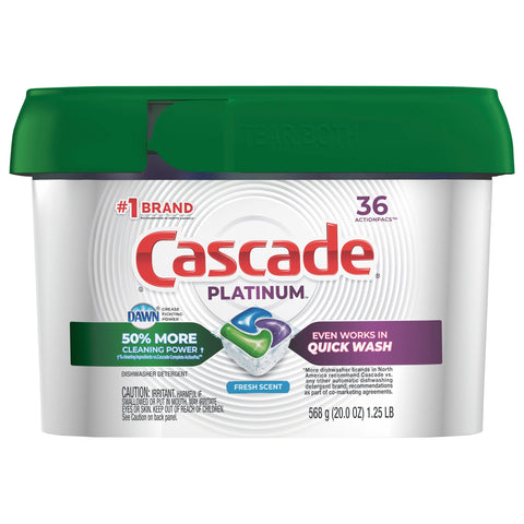 No. 1 Brand. Dawn: 50% more cleaning power. Even works in quick wash. No 1 brand recommended in North America. Ge Appliance. Profile. Whirlpool. Maytag. Frigidaire. Samsung. KitchenAid. Kenmore. Electrolux. Safe for septic tanks. Make sure items are dishwasher safe and follow manufacturer’s directions. Phosphate free. Good Housekeeping: Since 1909. Quality tested. Limited warranty. ghseal.com for details. www.cascadeclean.com. how2recycle.info. SmartLabel. Cascade believes in the safety and quality of out products. Visit Cascadeclean.com to learn more about what goes into our products and why we make those choices. For more ingredient information visit www.cascadeclean.com 1-800-765-5516. Try our ultimate clean. Platinum actionpac, tackle tough messes. Rinse aid powerful drying. Dishwasher cleaner keep your machine sparkling.