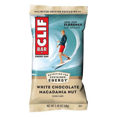 Natural flavor. Certified Organic by QAI. Non-GMO. Limited edition packaging. John John Florence Clif athlete. Nutrition for sustained energy. Growing up on Oahu, I was always active and in tune, I've found that my relationship with the environment has only grown deeper. I'm always on the go - and usually hungry - so having a Clif Bar is a great way to get energy between meals, and from a company I believe in. I appreciate that Clif Bar is made from sustainable ingredients, like organic rolled oats, and that the company shares my passion for being a positive steward for the planet and our local communities. Life is an adventure, and it's great to have Clif Bar along for the ride! - John John Florence 2-time World Champion Surfer. clifbar.com. 1-800-Cliffbar M-F 8-5 PT Clif Family Foundation. Giving Back.