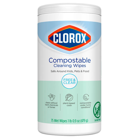 Clorox Free & Clear Compostable Cleaning Wipes - 75 CT 6 Pack