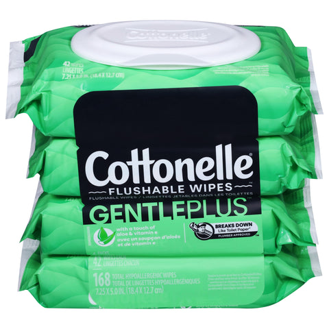 Cottonelle GentlePlus Flushable Wipes with a Touch of Aloe & Vitamin E 4 - 42 Wipe Packs - 168 CT 4 Pack