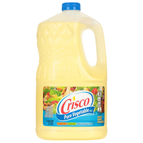 Per 1 tbsp: 120 calories; 2 g sat fat (10% DV); 0 mg (0%DV); 0 total sugars. 0 g trans fat (per serving) Gluten free. See nutrition information for fat and saturated fat content. Vegetable oil is a cholesterol food with 14 g of total fat per serving. Cholesterol free. 1000 mg ALA Omega -3 fatty acid (per serving). Not a low calorie food. Easy grip handle. Crisco is cooking. Crisco pure vegetable oil is versatile for all purpose cooking. Great for: sauteing pan-frying baking. Crisco.com. Questions ? Comments? 1-800- 766-7309.