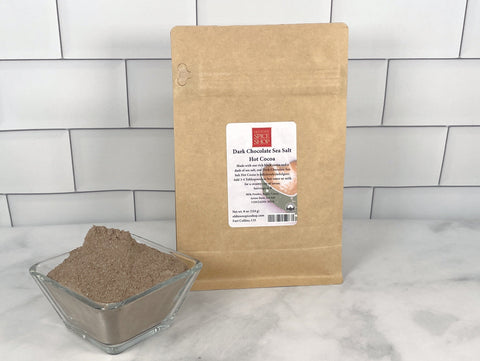 Made with our rich black cocoa and a dash of sea salt, our Dark Chocolate Sea Salt Hot Cocoa is deliciously indulgent. Add 3-4 Tablespoons to hot water or milk for a creamy cup of cocoa.