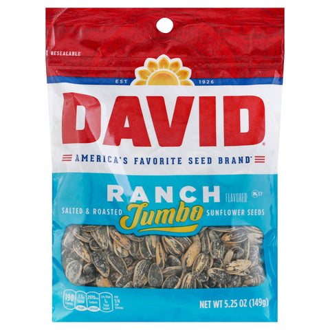 No artificial flavors or colors. Per 1/4 Cup Serving: 190 calories; 1.5 g sat fat (8% DV); 2970 mg sodium (129% DV); less than 1 g total sugars. Gluten free. Est 1926. America's favorite seed brand (David is America's no. 1 selling seed brand based on 2017 retail sales data from Information Resources Inc). American crown seed., It all began in 1926 inside a small grocery store in Fresno, California, where David Sunflower Seeds were roasted and seasoned with quality ingredients. Almost 100 years later, we still craft our quality, American-grown sunflower seeds with care. Why? Because the best things in life are often the simplest. - David., Delicious Seeds. Expertly Made: Our seeds are made with quality ingredients for an authentic homestyle flavor. Whole roasted seeds. American grown seeds. www.davidseeds.com SmartLabel: Scan for more food information. Questions, visit us at www.davidseeds.com or call 1-800-799-2800. Resealable. how2recycle.info.
