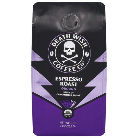 Death Wish Coffee Co Dark Ground Espresso Roast Coffee - 9 OZ 6 Pack