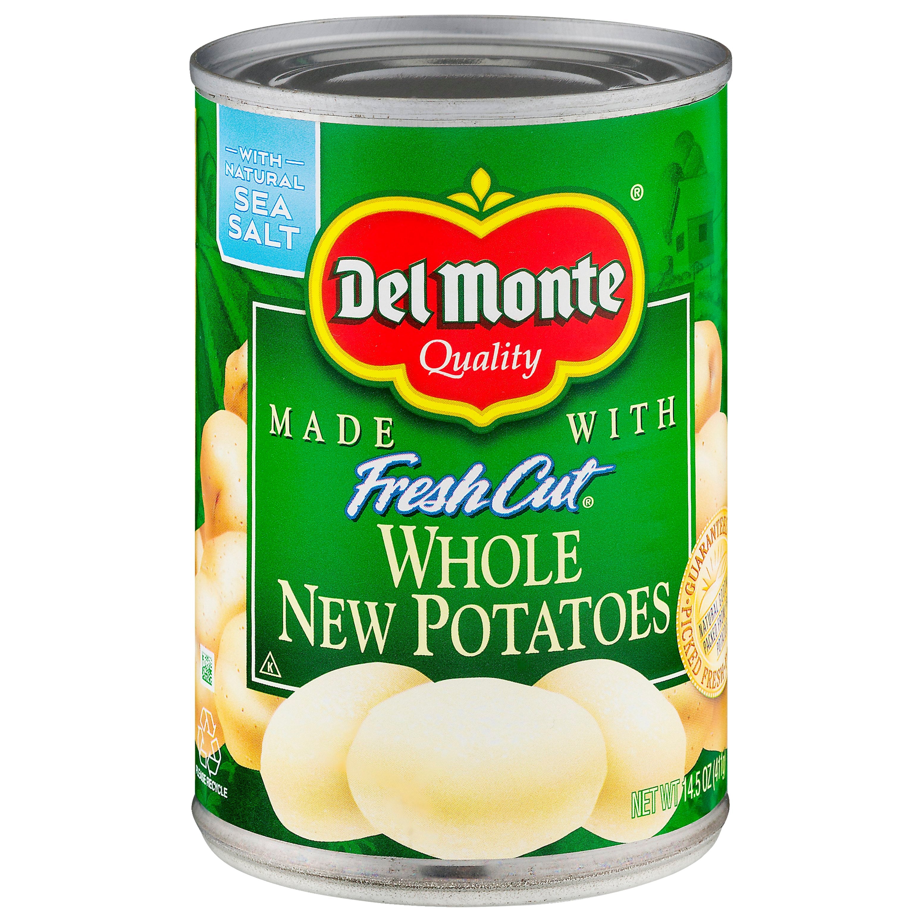 With natural sea salt. Del Montes Quality. Made with fresh cut. Del Monte whole new potatoes are the highest standard in freshness and flavor because they are packed from fresh potatoes picked fresh. Packed fresh. Unsurpassed quality you can taste in every bite. That's the Del Monte guarantee! Guaranteed. Picked fresh. Packed fresh. Natural goodness packed from fresh potatoes. www.Del Monte.com. Visit us at: www.Del Monte.com. Questions or Comments? Call 1-800-543-3090 (Mon-Fri). Please provide code information from the end of can when calling or writing. Please recycle. Product of U.S.A.