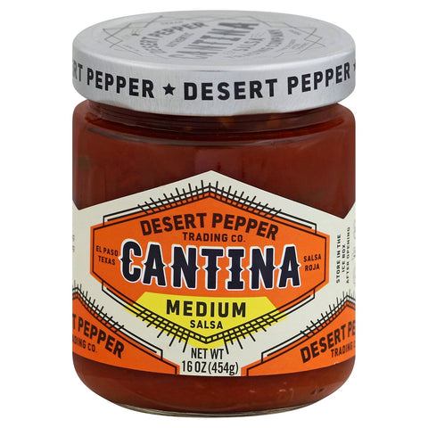Authentic. Authentic Recipe: Cantina Medium Red Salsa is the perfect amigo for snacking or cooking. It's like a shimmering hot sunset, with just the right amount of heat to light up your taste buds. Gluten free. Vegan. Fat free. www.desertpepper.com.