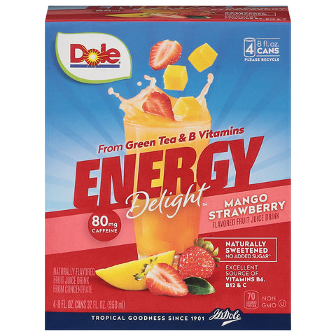 Dole Energy Delight Mango Strawberry Fruit Juice Drink 4 - 8 fl oz Cans - 6 Pack