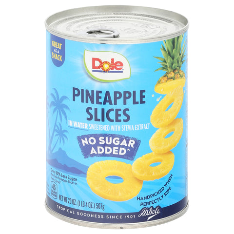 Dole No Sugar Added Pineapple Slices in Water Sweetened with Stevia Extract 20 oz - 12 Pack