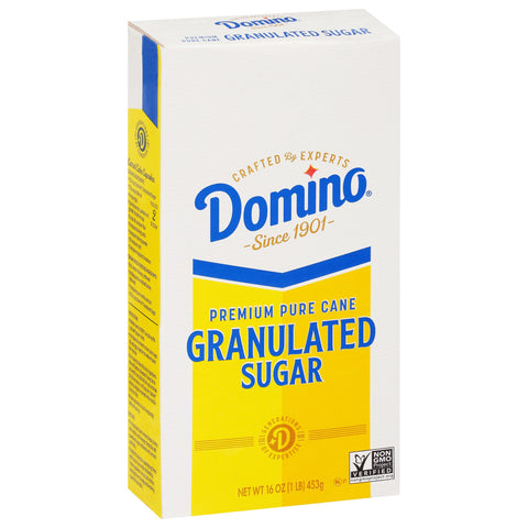 Premium pure cane granulated sugar. Non GMO Project verified. nongmoproject.org. Crafted by experts since 1901. Est. 1901. Generations of expertise. Only the Best: Since 1901, Domino Sugar has been the trusted partner for generations of bakers. Our commitment to quality and expect craftsmanship is our enduring promise to you. We use the highest standard to maintain the you. We use the highest standard to maintain the naturally sweet flavor found in the sugarcane plant. We don't take sugar lightly, and we know you don't either. People who choose the best, choose Domino. www.dominosugar.com. how2recycle.info. Follow us on social media! Facebook. Pinterest. Instagram. (hashtag)dominosugar. Questions or comments? www.dominosugar.com or call 1-800-729-4840. Also try Domino Golden Sugar Less Processed (Less processed than white granulated sugar): It's a less processed sugar than white granulated sugar. Domino Golden Sugar bakes, dissolves and measures cup for cup just like white granulated sugar without compromising performance or taste. Make a simple switch today!