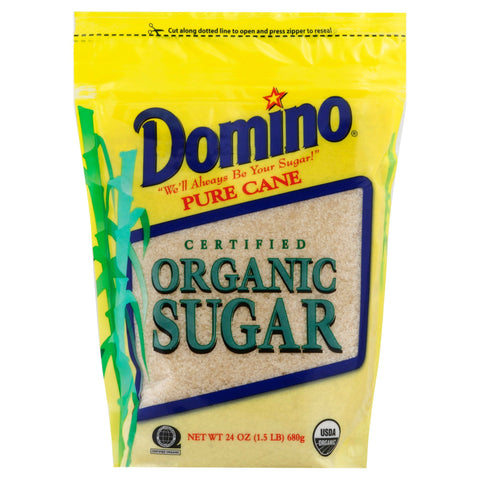 We'll always be your sugar! Certified Organic. Certified Organic by Quality Assurance International. USDA Organic. Carrying on with a 100 year tradition of making quality sugar. Domino Sugar proudly brings to you the most recent addition to its product line-Domino Organic Sugar. Our organic sugar is made from sun-sweetened sugar cane grown without the use of pesticides. We use a special single crystallization process that preserves the original flavor of the sugar cane. With its light blonde color and slight molasses taste, Domino Organic Sugar is perfect for cooking, baking, beverages or sprinkling as your favorite topping. You can feel good about serving Domino Organic Sugar to your family and friends-it's certified organic, having been produced in accordance with stringent organic certification requirements. Domino is part of ASR group. Questions or comments? Call 1-800-729-4840. www.dominosugar.com. Product of South America.