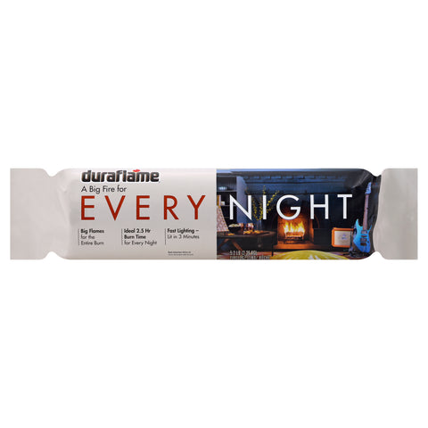 A big fire for every night. Big flames for the entire burn. Ideal 2.5 hr burn time for every night. Fast lightning - Lit in 3 minutes. Duraflame firelogs may be burned in all types of indoor, open-hearth fireplaces. They are designed to light fast and burn for 2.5 hours when used according to instructions. Variations in fireplace and climatic conditions may alter duration of burn. Heat content is approximately 67,600 BTU. If used in an outdoor fireplace/ fire pit, use only in a well ventilated area, and not under any form of cove. Weather conditions and wind may cause the log to produce more smoke and burn for a shorter duration. This log is for the Weeknight Warrior. Those who don't wait for the weekend to heat things up. They seize the day, and make every night special. The Every Night Log burns big and for the perfect amount of time, so it will be out before you are. If your fireplace is functioning properly, emissions of this firelog should be vented outdoors where they dissipate in the air. A properly installed and maintained fireplace and chimney will substantially reduce the possibility of combustion by-products entering your home. If you suspect that your unit is not functioning properly, a qualified contractor should be consulted. The chimney safety institute of America (CSIA) recommends that your fireplace and chimney be inspected annually. For a list of CSIA Certified Chimney Sweeps in your area visit www.csia.org/duraflame. Air Quality Advisory (Nov-Feb): Use of this and other solid fuels may be restricted at times by law. Please check 1-877-4NO-BURN or http://www.8774NOBURN.ORG before burning. UL Classified. Processed solid fuel for use in Listed factory-build fireplaces. Duraflame firelogs are suitable for use in UL listed factory-built fireplaces. www.duraflame.com. fireWise: Burns cleaner than wood. Duraflame firelogs light faster and burn more completely than firewood, and becouse far less material is consumed when burning a firelog, significantly fewer pollutants are emitted than a comparable wood fire. 80% less fine particles (Source: Dec 2005 Environment Canada/ US EPA Reg. 5"Content and emission characteristics of artificial wax firelogs) 75% less carbon monoxide (Source: Dec 2005 Environment Canada/ US EPA Reg. 5"Content and emission characteristics of artificial wax firelogs) 90% less hazardous air pollutants (Source: Dec 2005 Environment Canada/ US EPA Reg. 5"Content and emission characteristics of artificial wax firelogs). Saves trees: A duraflame firelog consumes 80% less material than a comparable 2.5 hour wood fire, and burning firelogs instead of wood results in signifi- cantly fewer trees cut down for use as firewood. Recycled & renewable: Duraflame firelogs use recycled and renewable wood sawdust and agri- cultural fibers, saving valuable natural resources. The renewable fibers are mixed with blends of wax and other combustible, renewable materials. Made in USA.