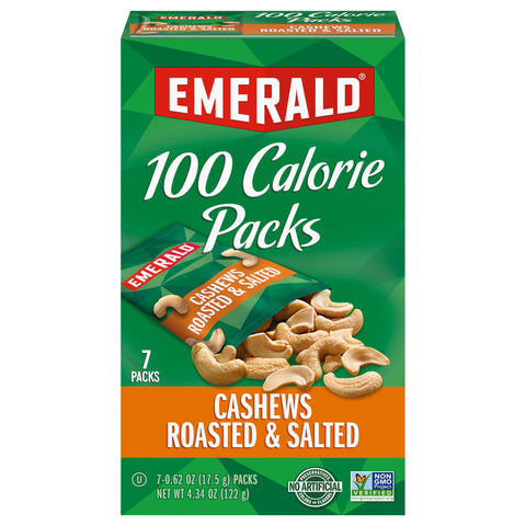 Emerald Nuts 100 Caloire Packs Roasted & Salted Cashews - 4.34 OZ 12 Pack