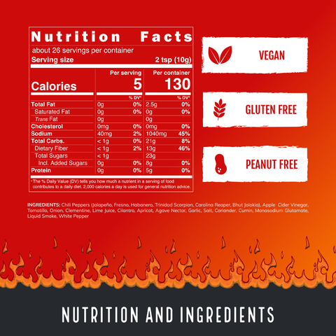 Pata del Diablo - aka “The Foot of the Devil”, is a super-hot tomatillo pepper sauce infused with bright citrus, bold Latin spices, and a smoky touch. The prominent, exhilarating heat rushes to face you, challenging you to take bite after bite, until the jar is empty. This unique twist on a salsa verde incorporates juicy clementines and the incredible flavor of fresh super hot peppers to pair perfectly with nachos, tacos of all types, scrambled eggs, white chicken chili, seafood, and so much more! 9/10 heat.